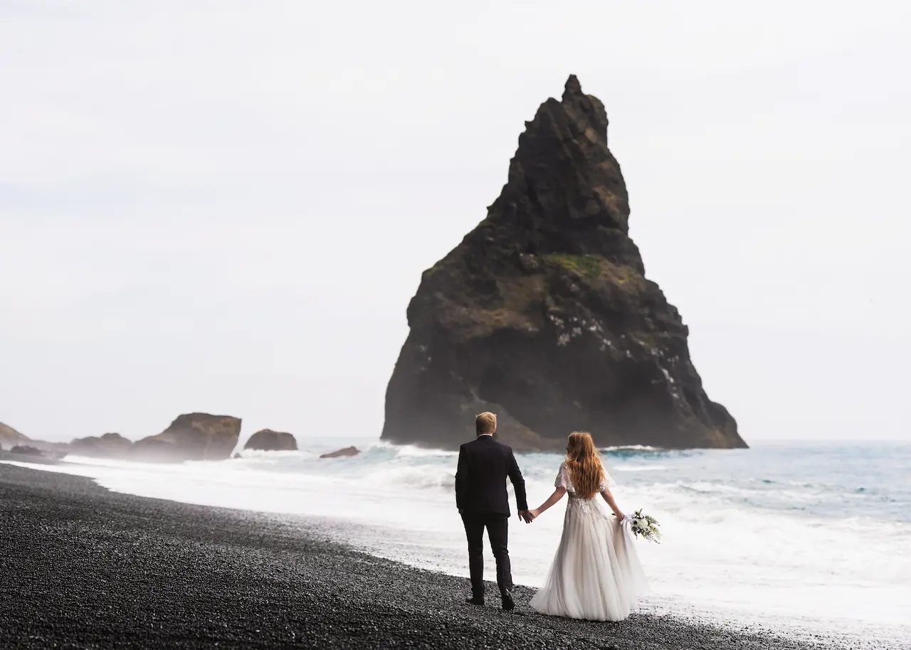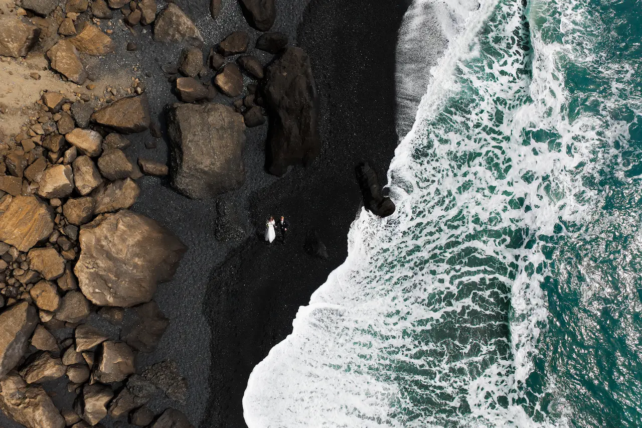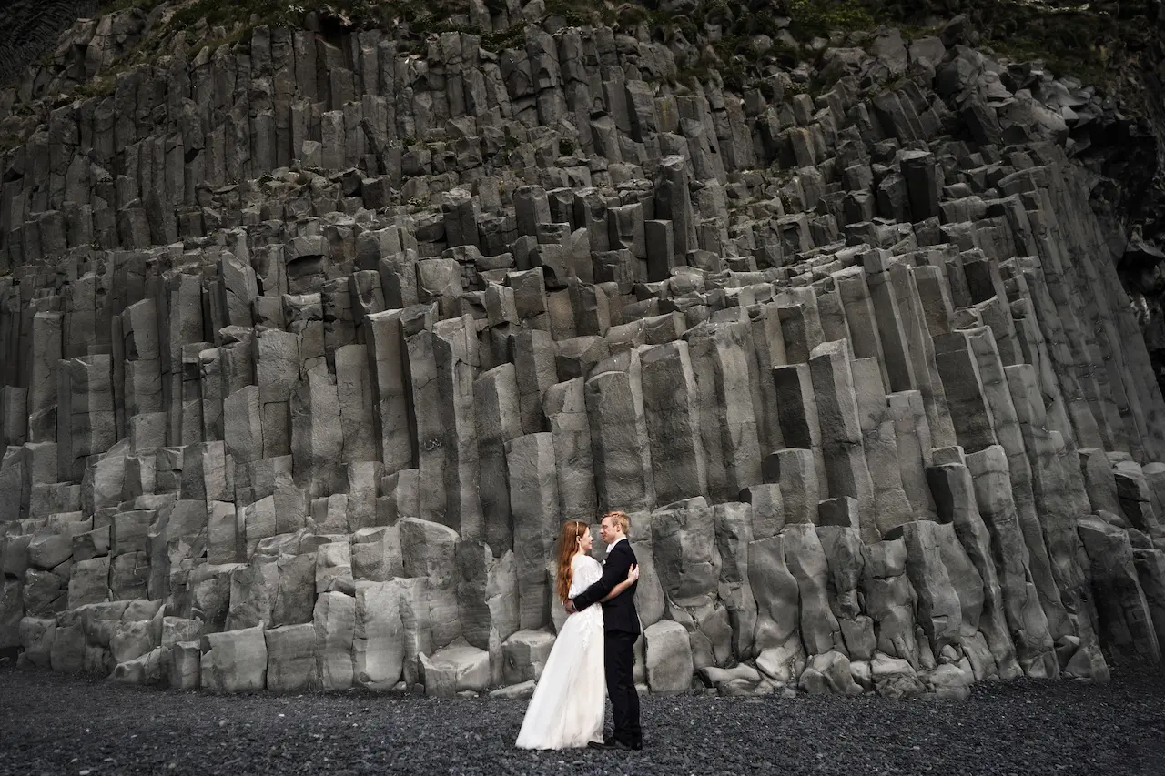 Throughout the day Gunnar and Roxana travel across the region with a photographer and videographer, exploring the dramatic scenery around Vík and nearby waterfalls. Each location reveals new emotions, quiet moments and breathtaking views, turning their wedding day into a cinematic love story.